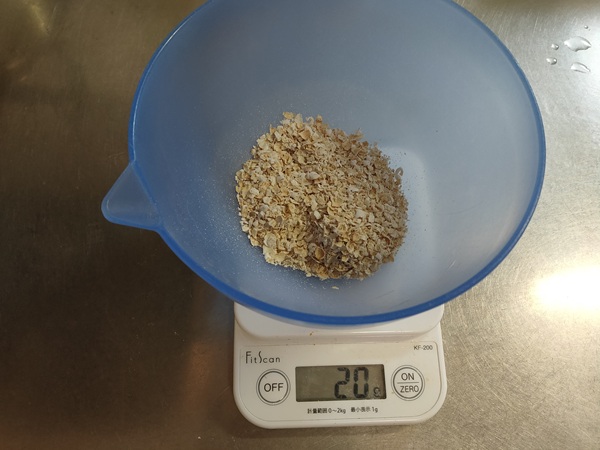 1、オートミール20gをボールに入れます!